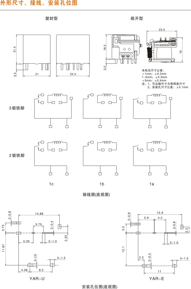 觸點(diǎn)形式繼電器常開(kāi)或常閉(常見(jiàn)4、6只腳)、轉(zhuǎn)換(常見(jiàn)5只腳或8只腳)