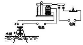防訊報(bào)警器:k是接觸開(kāi)關(guān),b是一個(gè)漏斗形的竹片圓筒,里面有個(gè)浮子a,水位上漲超過(guò)警戒線時(shí),浮子a上升,使控制電路接通,電磁鐵吸下銜鐵,于是報(bào)警器指示燈電路接通,燈亮報(bào)警。
